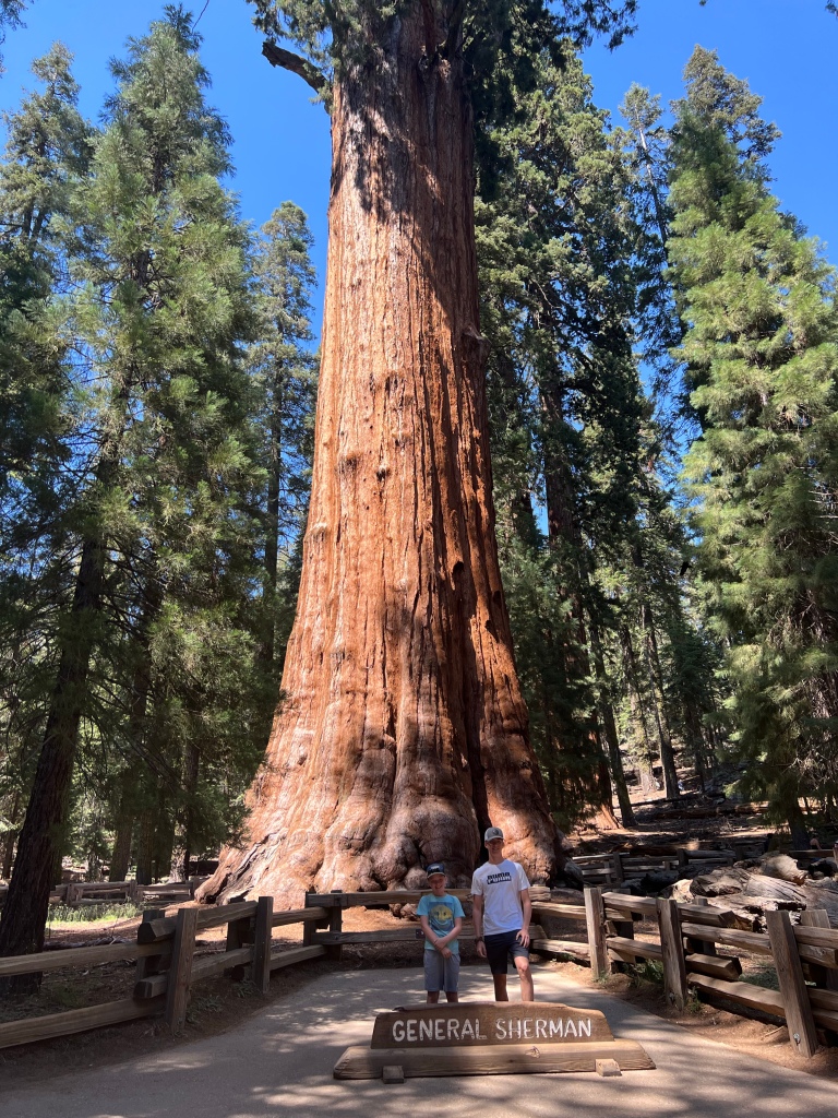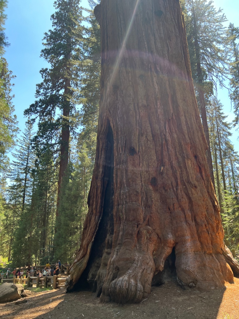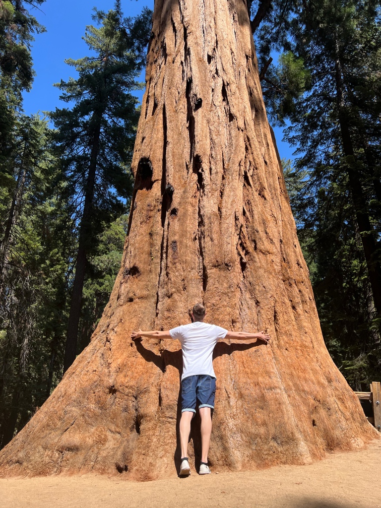 Vielleicht mögt ihr euch erinnern: Ich war vor ein paar Wochen im Redwood National Park und habe die Küstenmammutbäume dort bewundert. Es war ein zauberhaftes Erlebnis und Chrigu und ich haben uns deshalb entschieden, den voluminösesten Baum der Erde zu besuchen. Dieser steht im Sequoia Nationalpark südlich vom berühmten Yosemite Nationalpark. Der Baum gehört zur Gattung der Riesenmammutbäume und ist zwar nicht der längste Baum auf Erden (Hyperion), hat jedoch das grösste Stammvolumen. Deshalb wird er manchmal auch als das grösste Lebewesen auf Erden bezeichnet 😱 Für mich war es besonders, weil ich die Farbe der Rinde im Sonnenlicht besser bestaunen konnte als im nebligen Redwood Wald weiter nördlich 😍